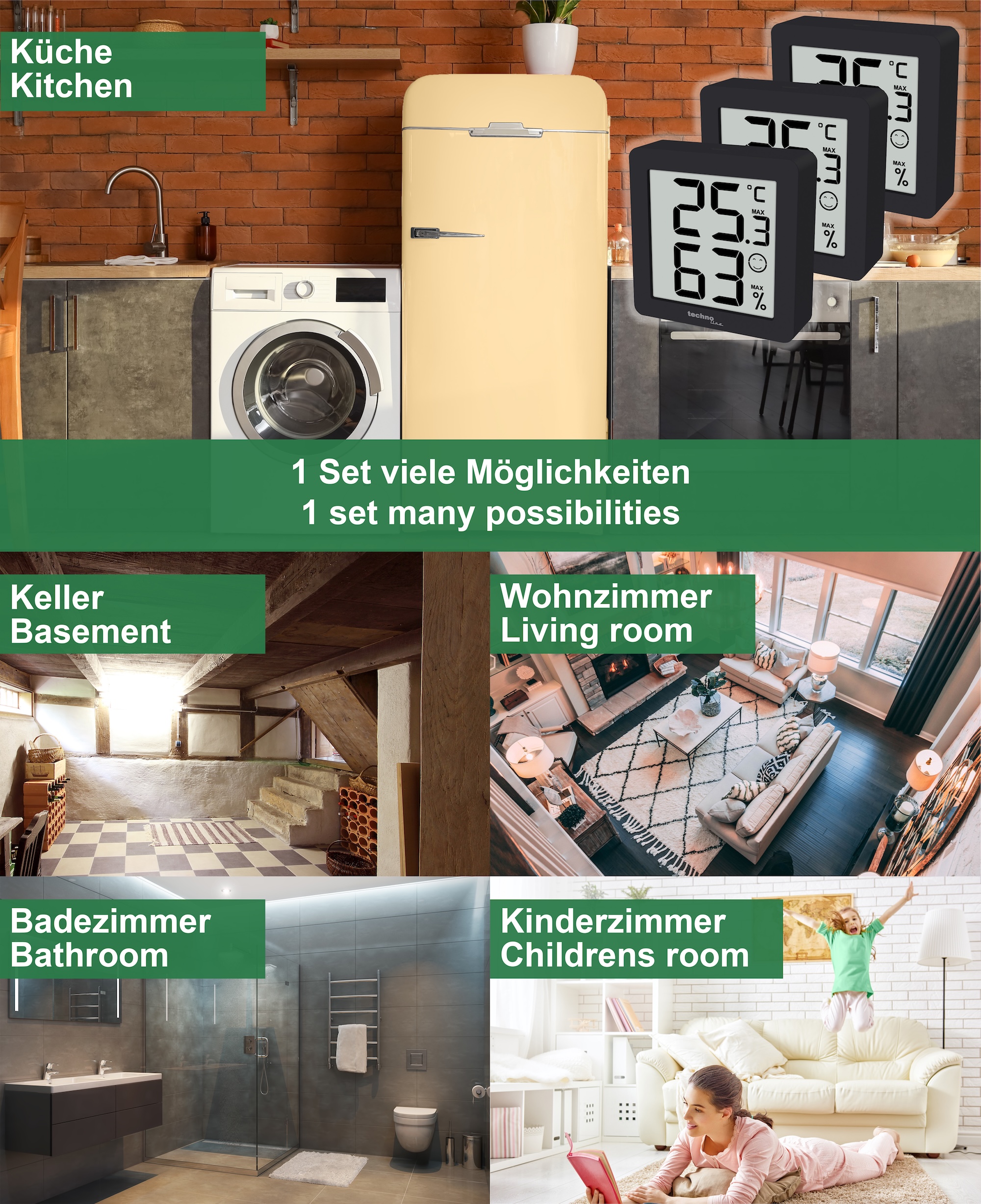 Innenluftfeuchtigkeits-Messbereich: 20% bis 95%