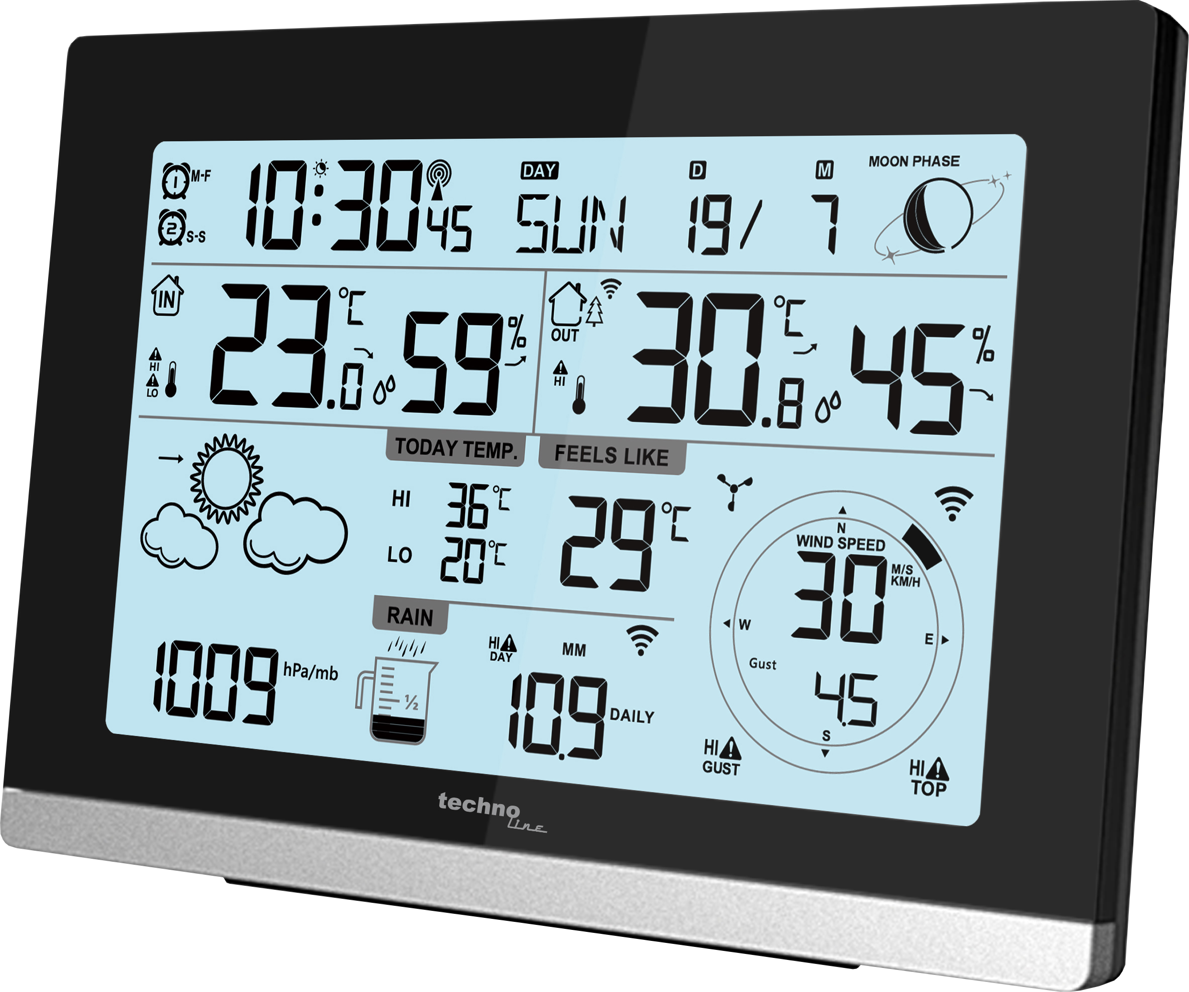 Power supply: Power supply unit (included), 2 x AA Mignon LR06 (only for back-up, not included)